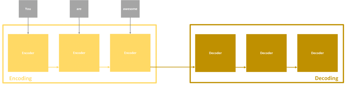 Thus far we saw how Encoder passes only the last hidden state as a context to the Decoder. When we use attention, the Encoder sends all hidden states to the Decoder. Apart from that, the Decoder does some extra processing before producing the output. This is done because now every hidden state that the Encoder has sent is associated with certain part of the input sequence. In the example “You are awesome.”, first hidden state in the context would be related to the word “You”, second hidden state would be related to the word “are”, and so on. The Decoder has more information now, so it can make use of it.
